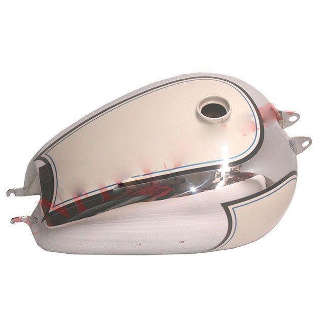 This is a brand new STEEL MADE PETROL FUEL GAS TANK FOR BSA A7 10 PLUNGER STAR TWIN. The above-shown tank is suitable for BSA A10 PLUNGER. TANK COLOUR HEX GRAY F2 F2 F2 CHROME & BLACK BLUE STRIPE.