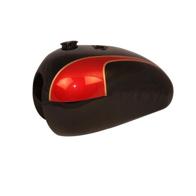 Brand new RED & BLACK PAINTED TRIUMPH BONNVILLE T140 oil in frame FUEL TANK + FILLER CAP WITH KEYS. The above tank is made from 18 gauge steel sheet. The tank is handcrafted in India to exact dimensions of the original ones. This can be fitted on TRIUMPH T140 “BONNIE” MODELS from 1973-88. This can be fitted on other bikes too.