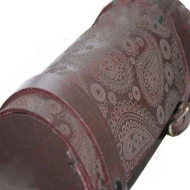 Pure Brown Leather Retro Tool Bag Roll With Paisley Design Motorbike Motorcycle